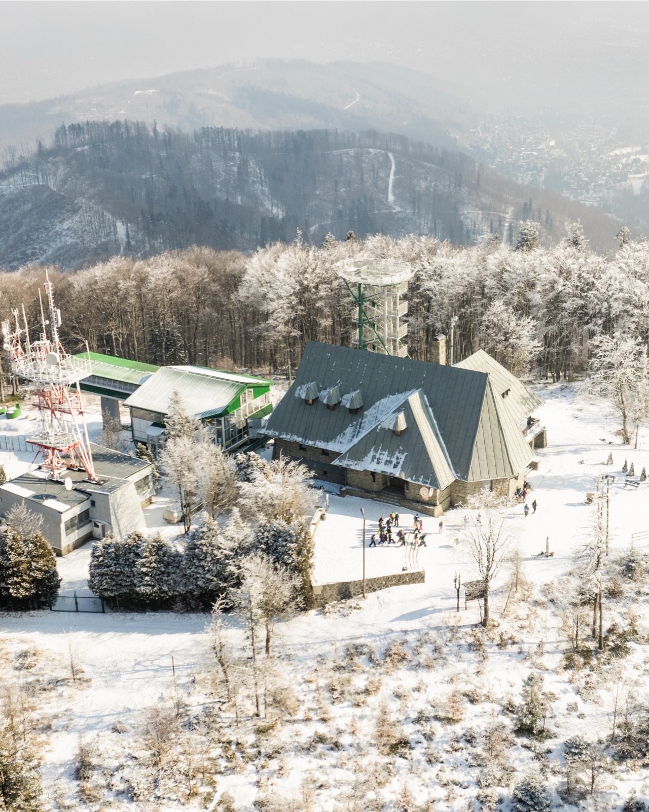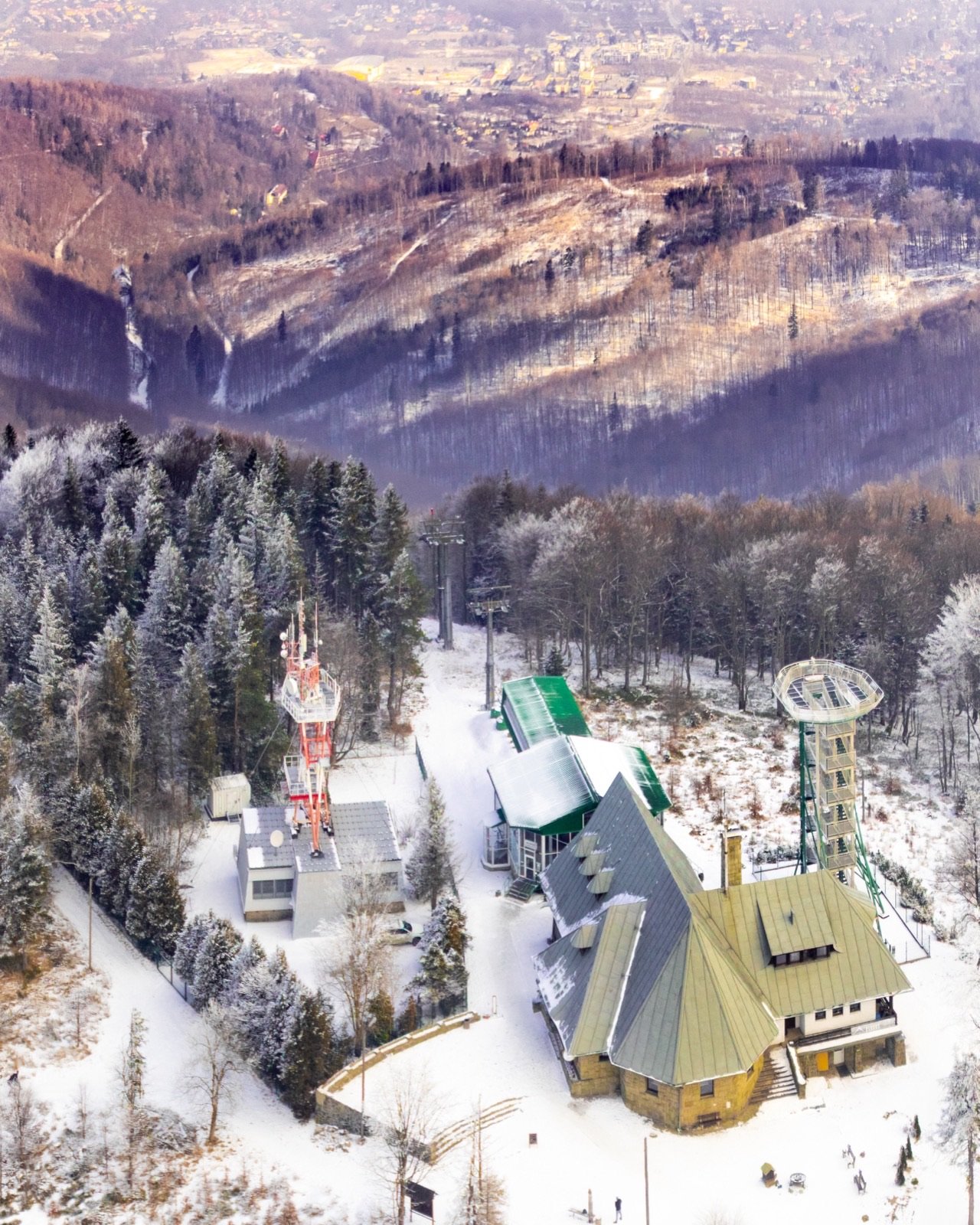 Stara Stacja z lotu ptaka — panorama Szyndzielni