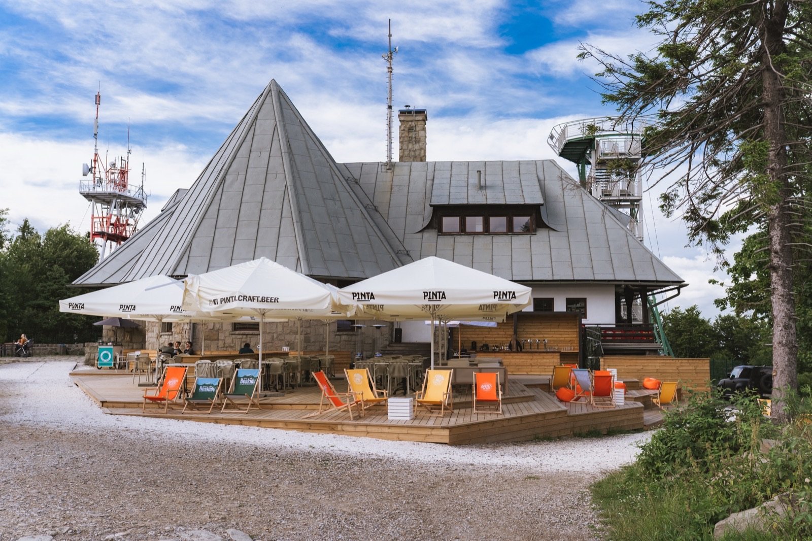 Restauracja latem — taras z widokiem na góry