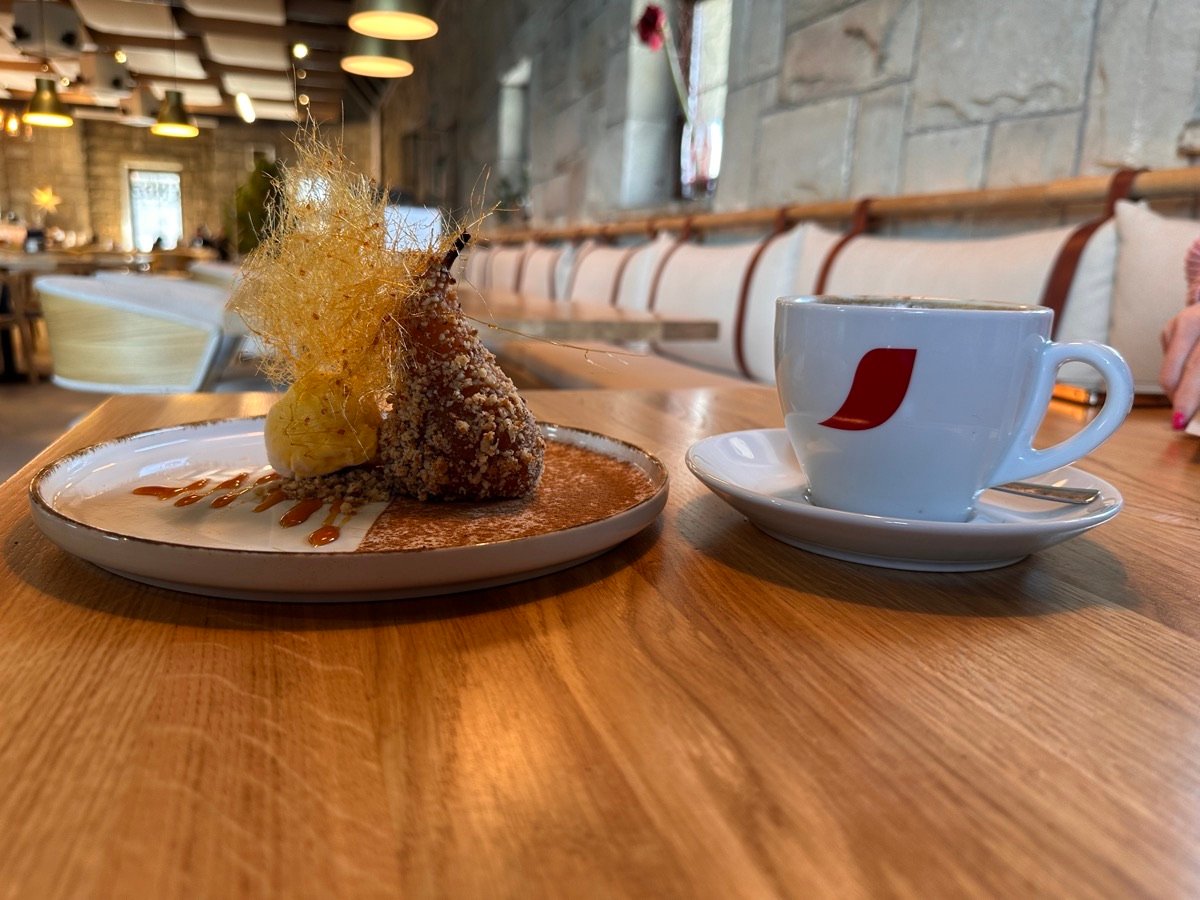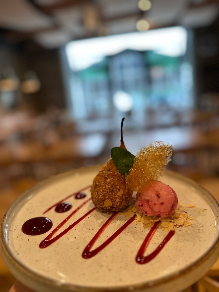 Gruszka w kruszonkowej panierce z karmelem