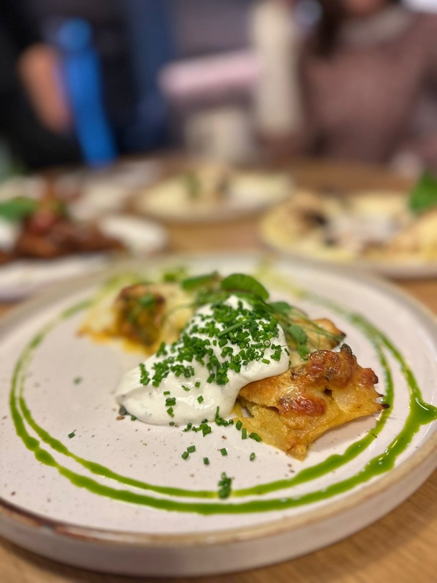 Pierogi zapiekane ze śmietaną i szczypiorkiem