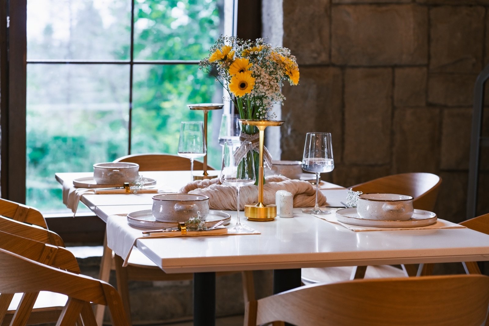Eleganckie nakrycie stołu ze słonecznikami